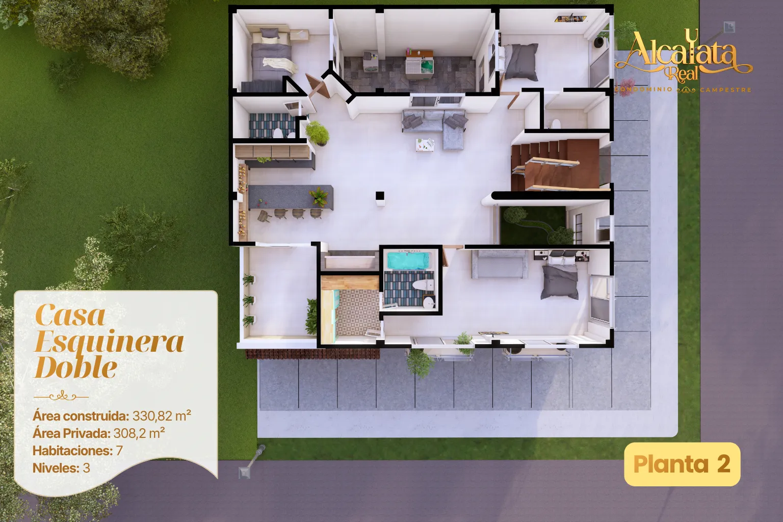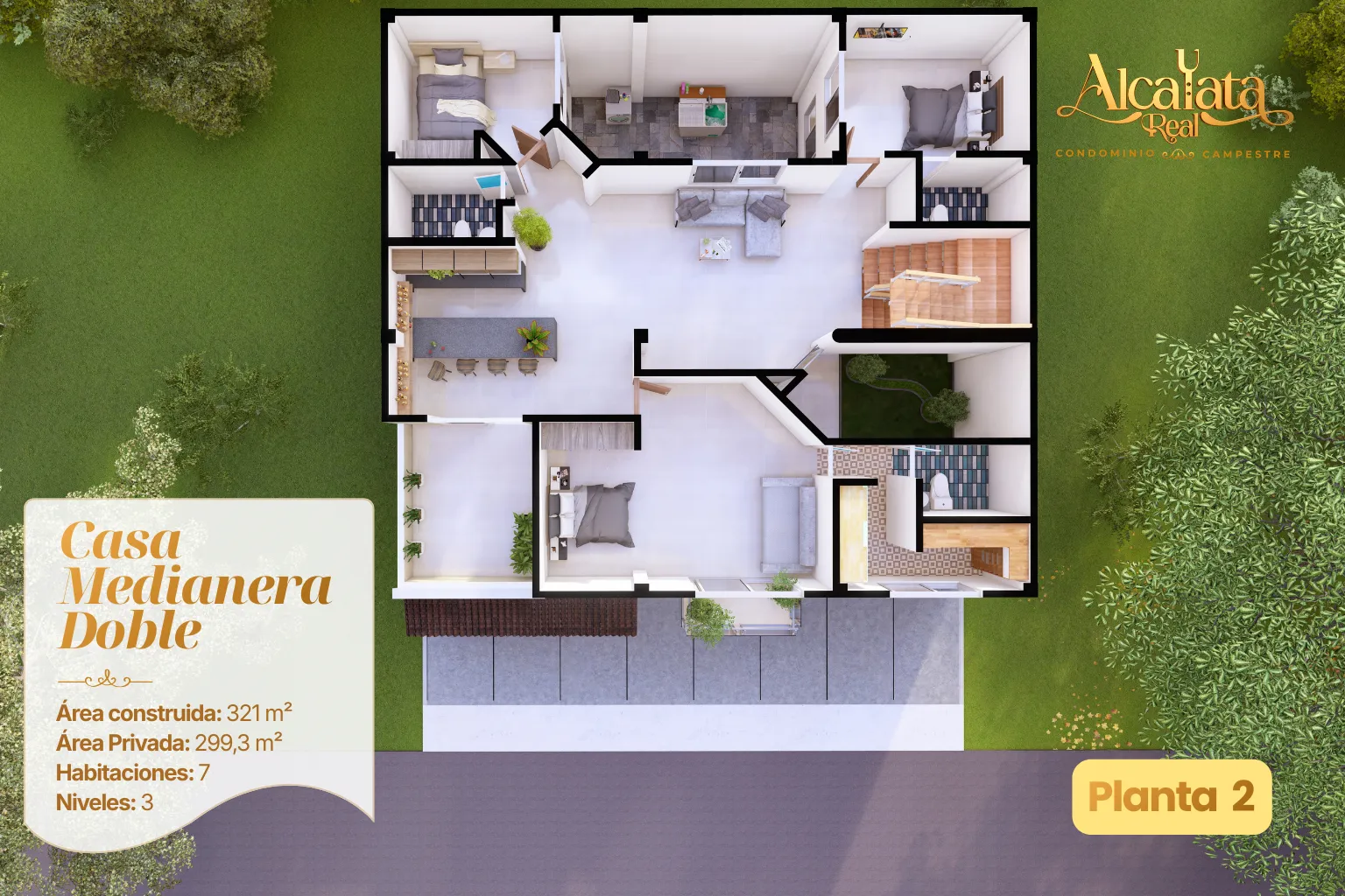 El diseño urbanístico de Alcayata Real prioriza el bienestar diario de las familias. Cada elemento está pensado para que el entorno complemente el hogar y conserve su valor con el tiempo.
